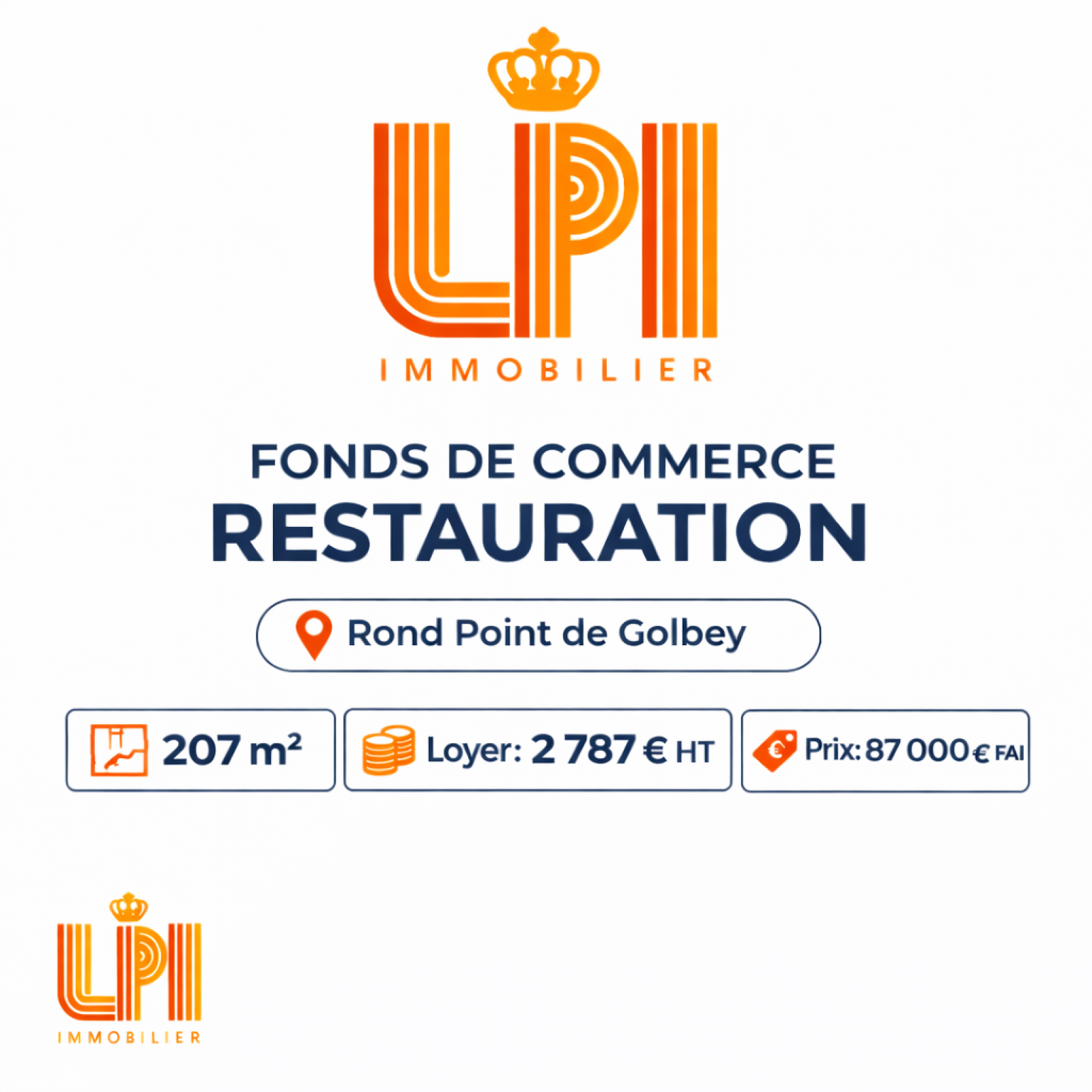 LPI Immobilier vous propose en exclusivité ce fonds de commerce de restauration, idéalement situé à proximité immédiate du Rond Point de Golbey, bénéficiant d’une excellente visibilité et d’un fort passage.