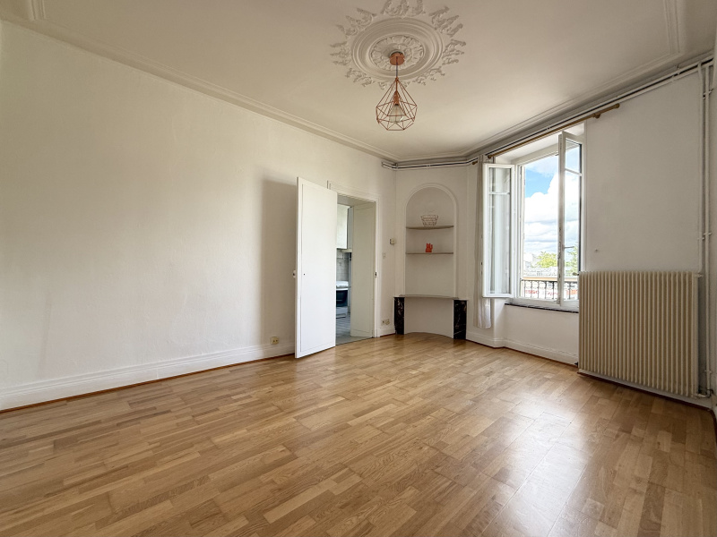 L’appartement, traversant et baigné de lumière, offre de beaux volumes, une hauteur sous plafond généreuse et une agréable terrasse.