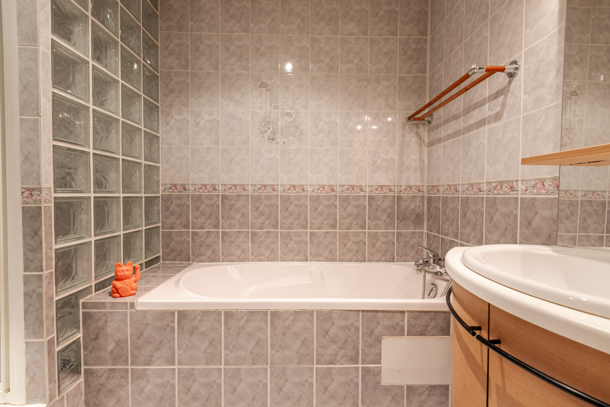 - Une salle de bain avec baignoire et douche
