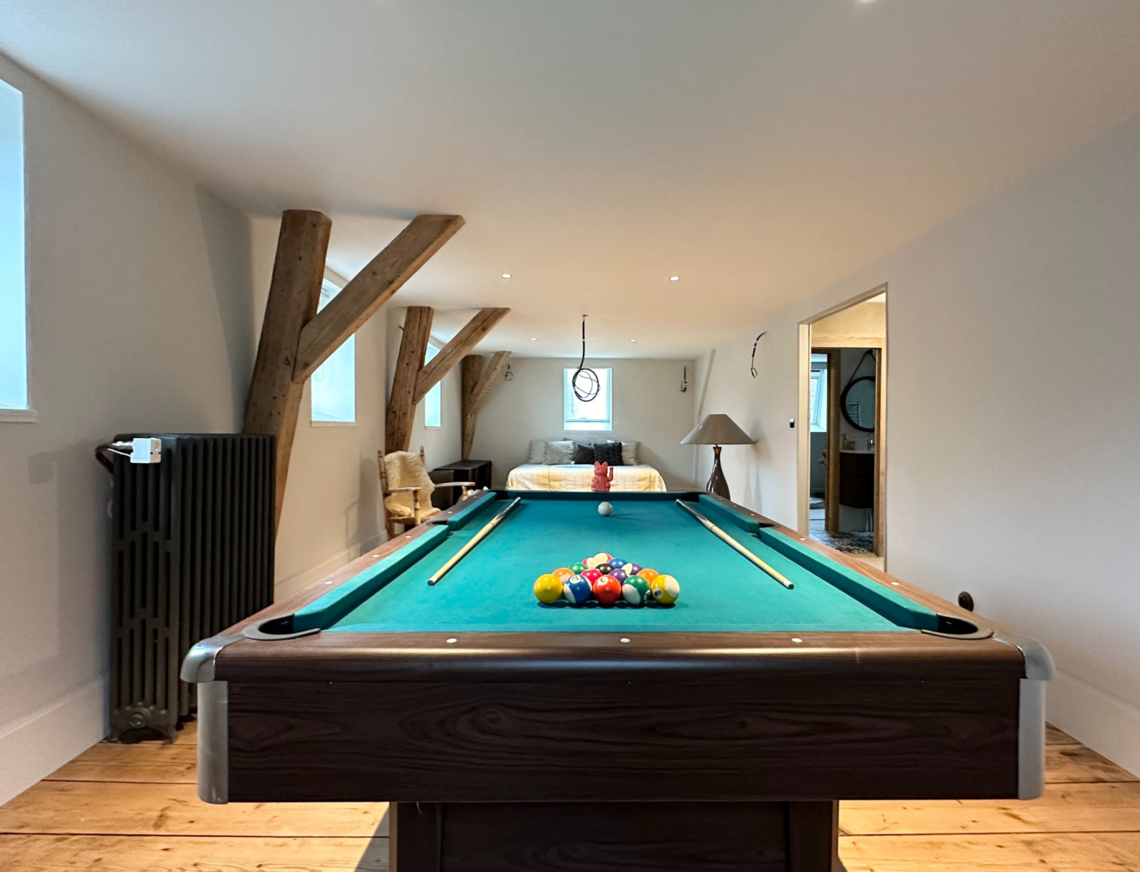Deuxième étage : Deux autres chambres, une grande salle de jeux, et une salle d'eau avec WC.