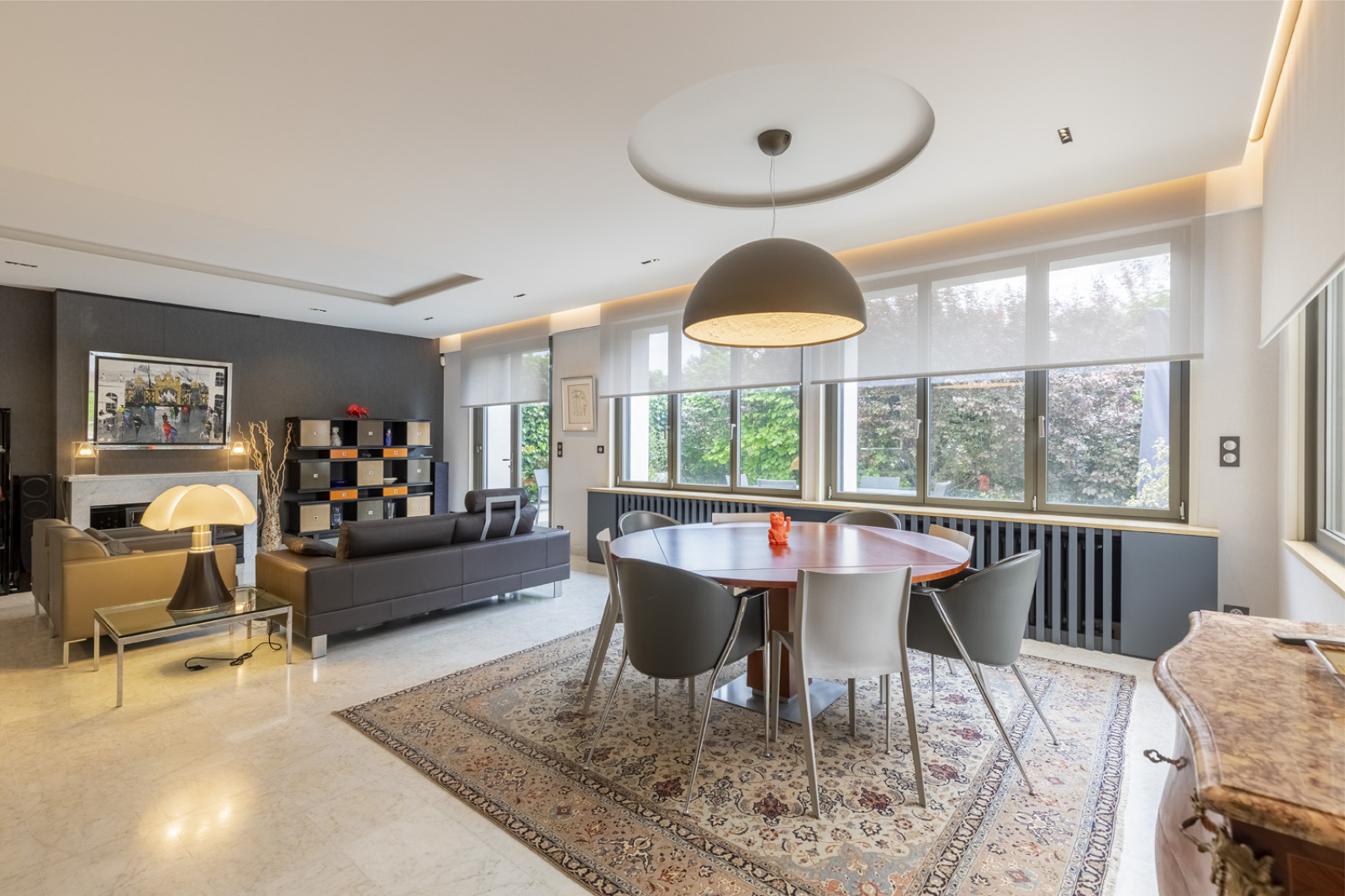 Dès l’entrée, on est frappé par les volumes généreux et la luminosité omniprésente. Le vaste séjour traversant, baigné de lumière grâce à ses grandes baies vitrées, s’organise autour de plusieurs espaces de vie : un salon raffiné avec cheminée contemporaine, une salle à manger accueillante, et un salon d’été propice à la détente. L’ensemble du rez-de-chaussée a été rénové il y a trois ans par un architecte nancéien reconnu, dans un esprit contemporain mêlant confort et finitions haut de gamme. La cuisine, entièrement équipée avec des matériaux d'une qualité exceptionnelle, ravira les amateurs de gastronomie. Un bureau et un espace TV viennent compléter ce niveau avec goût.