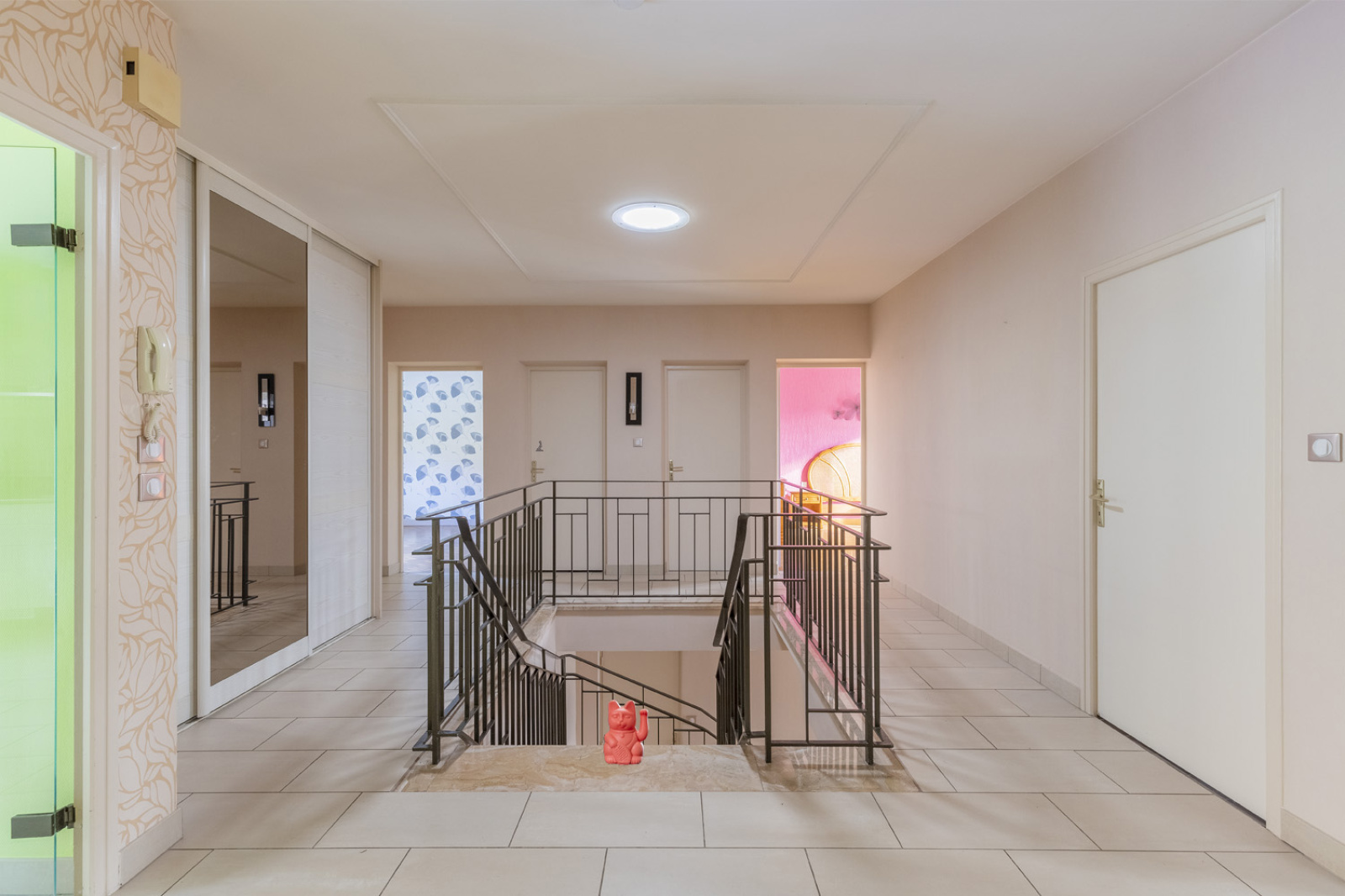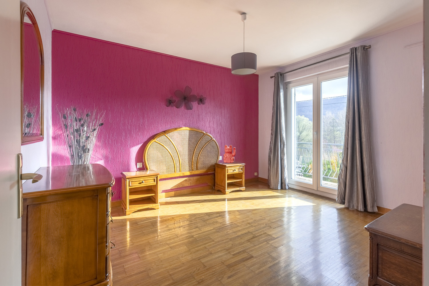 Au rez-de-chaussée, une entrée accueillante mène vers une première chambre dotée de sa salle d’eau privative, idéale pour recevoir ou pour exercer une activité indépendante. Une cave à vin avec espace de dégustation ainsi qu’un grand garage comprenant un atelier et de nombreux rangements complètent ce niveau.